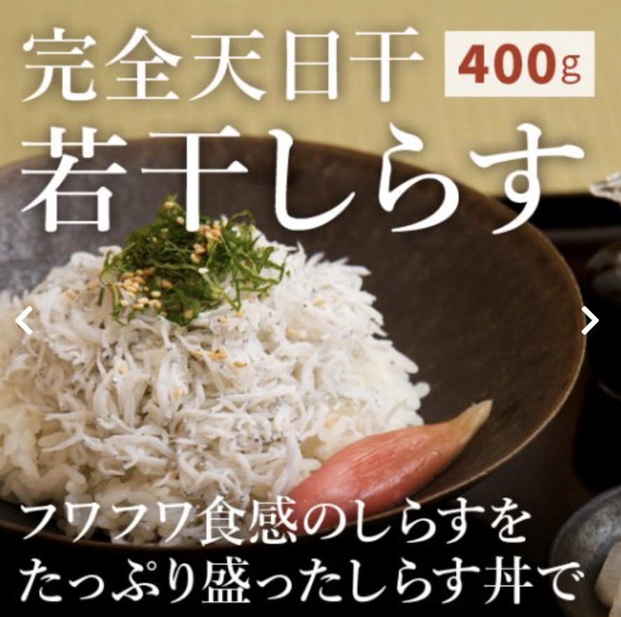 • 完全天日干若干しらす(400g)【フワフワ食感のしらすをたっぷり盛ったしらす丼で】
